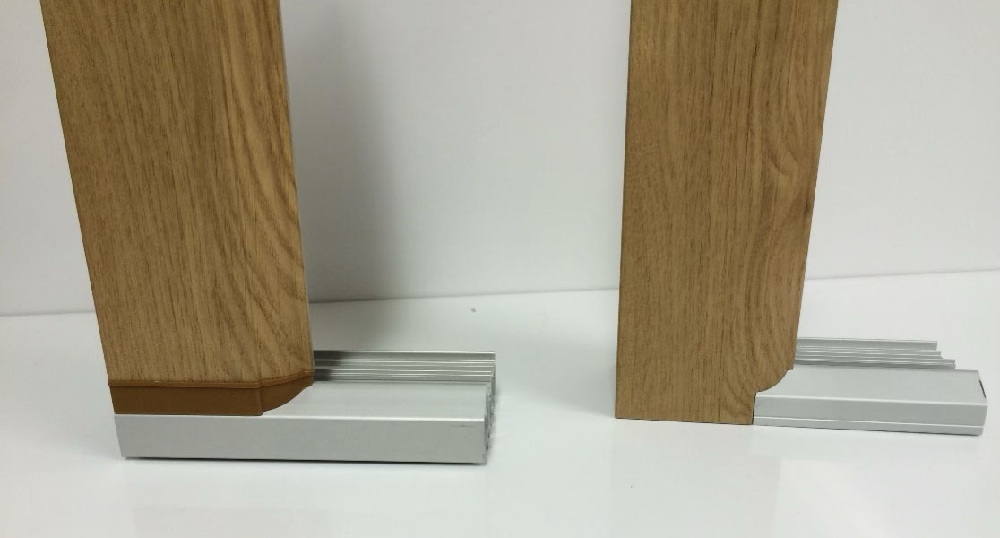 All Garrard Aluminium thresholds are designed to be end milled to the frame to provide a neat joint (Right).